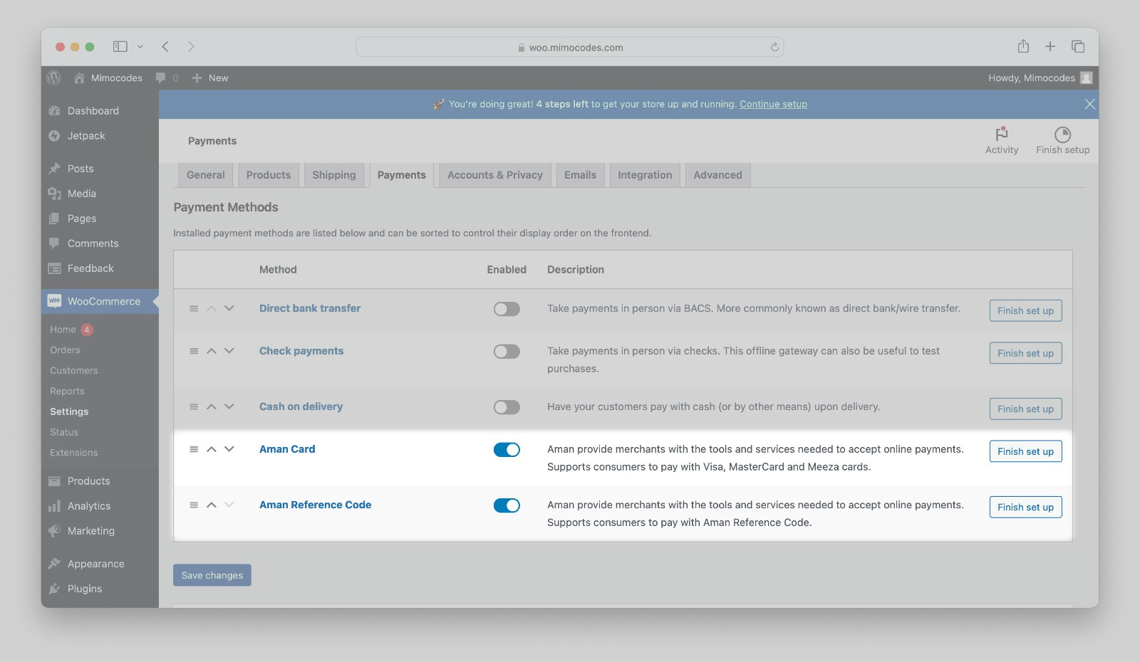 - Congratulations! You've successfully installed and enabled the Woocommerce Aman plugin!